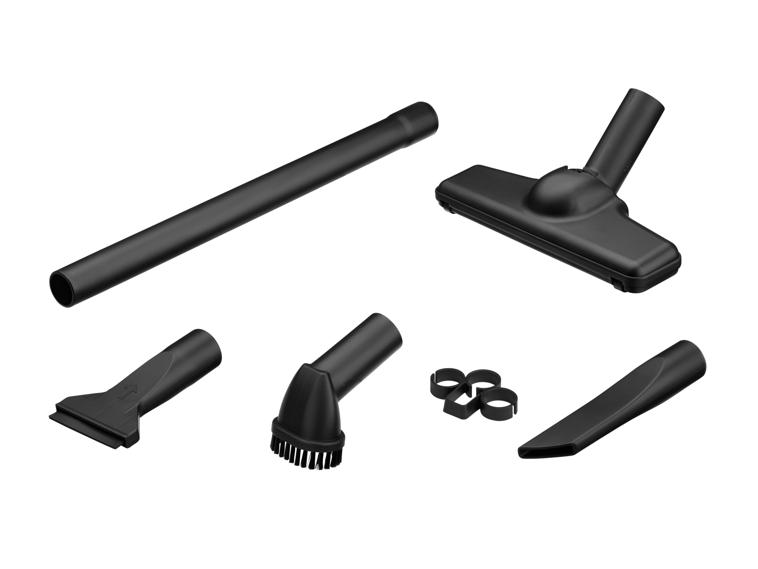 Contenu du colis: 1x aspirateur à main sans fil, 1x tube d’extension (46,5 cm), 1x buse au sol, 1x buse à fentes, 1x buse humide, 1x embout de brosse, 1x support de buses